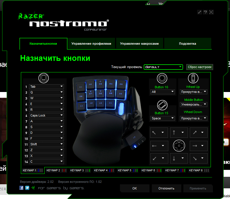 Остальные надо переназначать, жертвуя другими кнопками вызова функций в игре. То есть коренным образом переучиваться. Тут и возникает вопрос, а надо ли идти на такие жертвы, и хватит ли вам в итоге кнопок? Тем более, что лично я не видел ни одного профессионального киберспортсмена-старкрафтера, который играет на Nostromо или его аналогах.