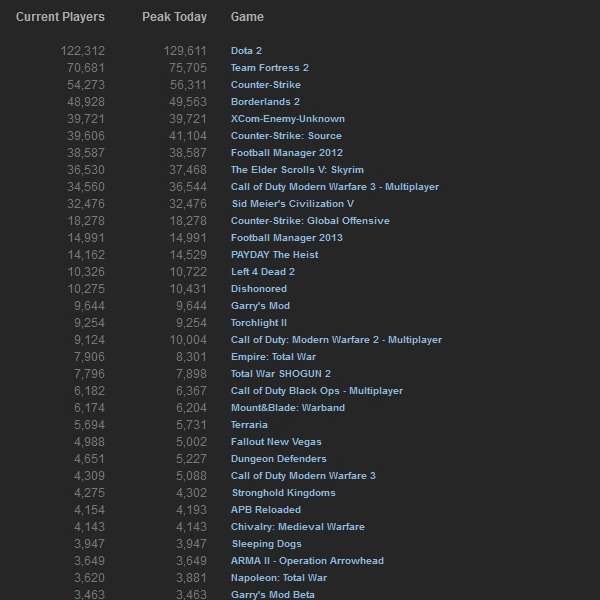 Cамые популярные на данный момент игры в Steam: