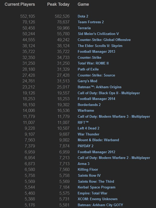 Самые популярные на данный момент игры в Steam: