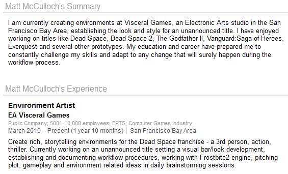 Когда сведения профиля “засветили” в Интернет-СМИ, Мэтт подправил информацию о себе. Теперь в его портфолио ни слова о Frostbite 2.