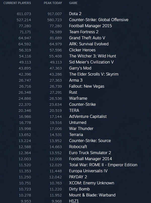 Наиболее популярные на данный момент игры в Steam: