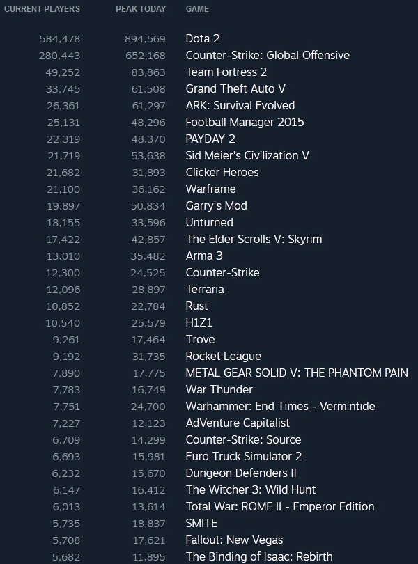 Наиболее популярные на данный момент игры в Steam: