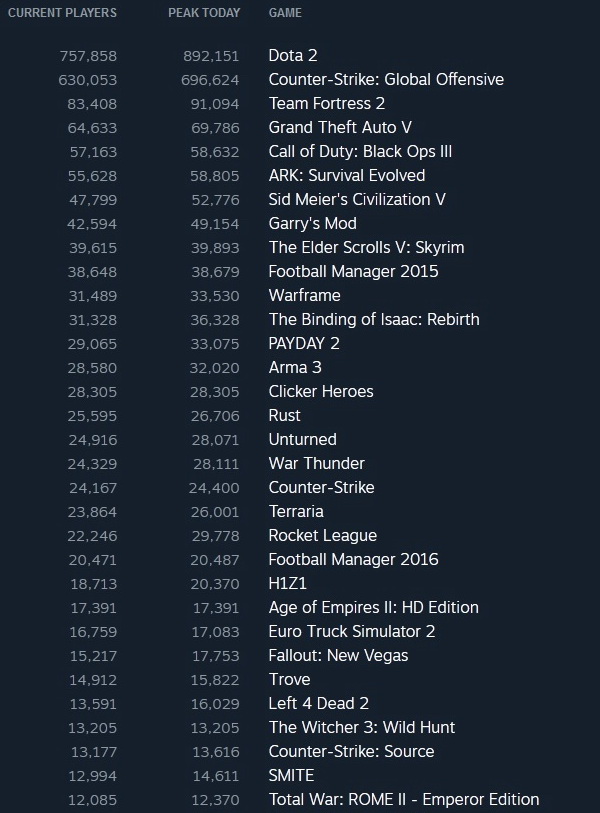 Наиболее популярные на данный момент игры в Steam: