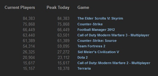 The Elder Scrolls 5: Skyrim, From Dust и Call of Duty: Modern Warfare 3 – так выглядит тройка лидеров продаж на Steam за прошлую неделю.